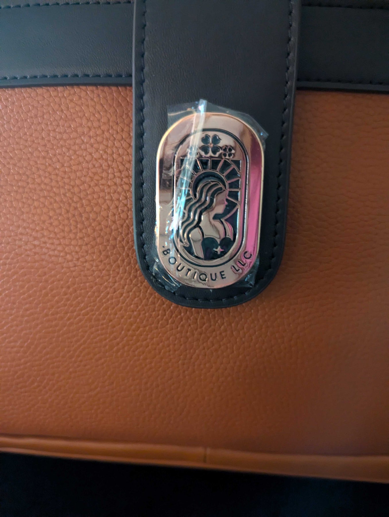 The front pocket is secured with an embossed logo plate that is magnetized, minimizing the need for user intervention to close or lock it. Additionally, four metal rose gold feet on the bottom protect the tote from damage when placed on various surfaces like floors or cement.