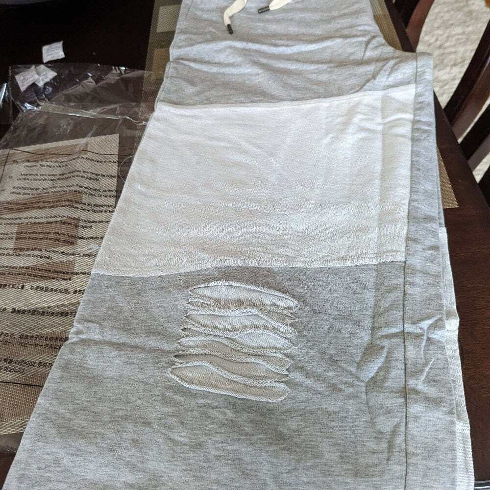 Expertly crafted from premium heavyweight French terry, these High Waist Oversized Distressed Capris offer a comfortable, roomy fit. The reversible contrasting color-block adds a stylish touch, while the drawstring and elastic waist provide an easy high rise. These capris feature a wide leg cropped design with ripped, frayed, and distressed details for a unique look.