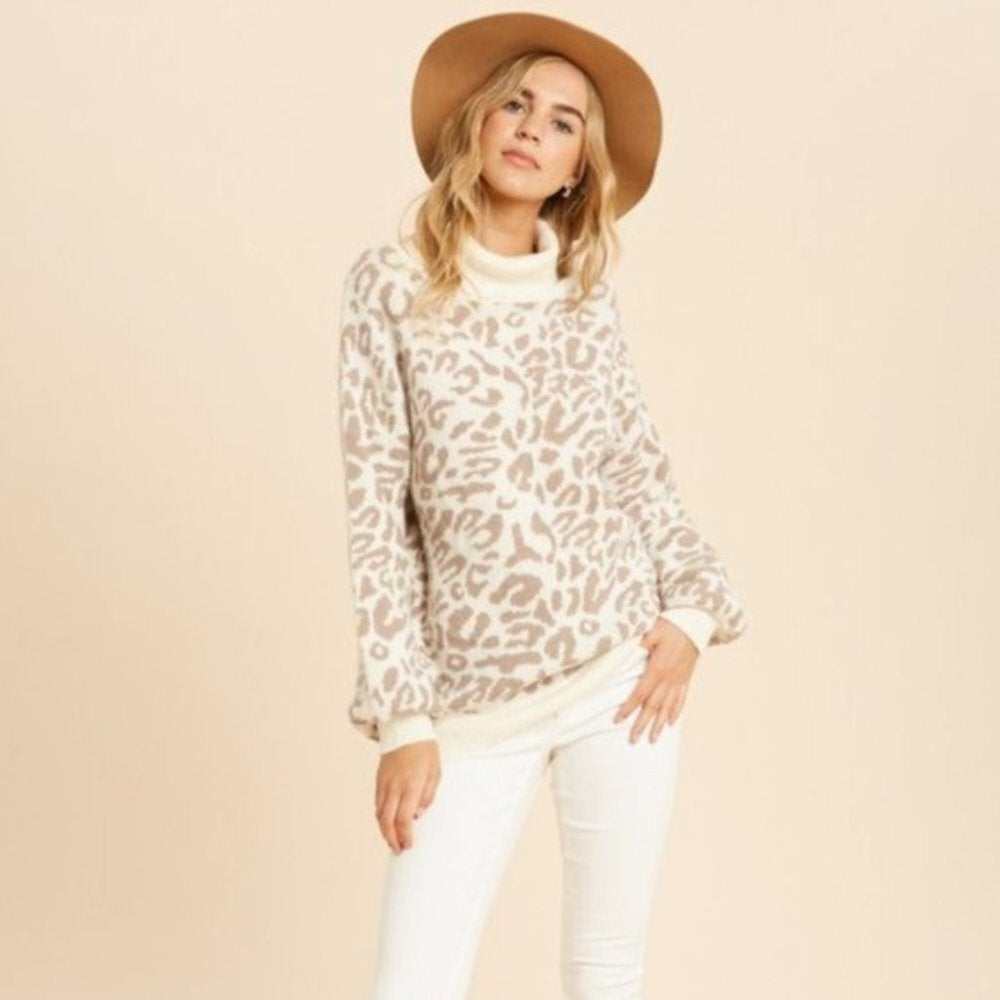 Leopard Print Turtleneck Sweater - Primrose Signature Boutique
