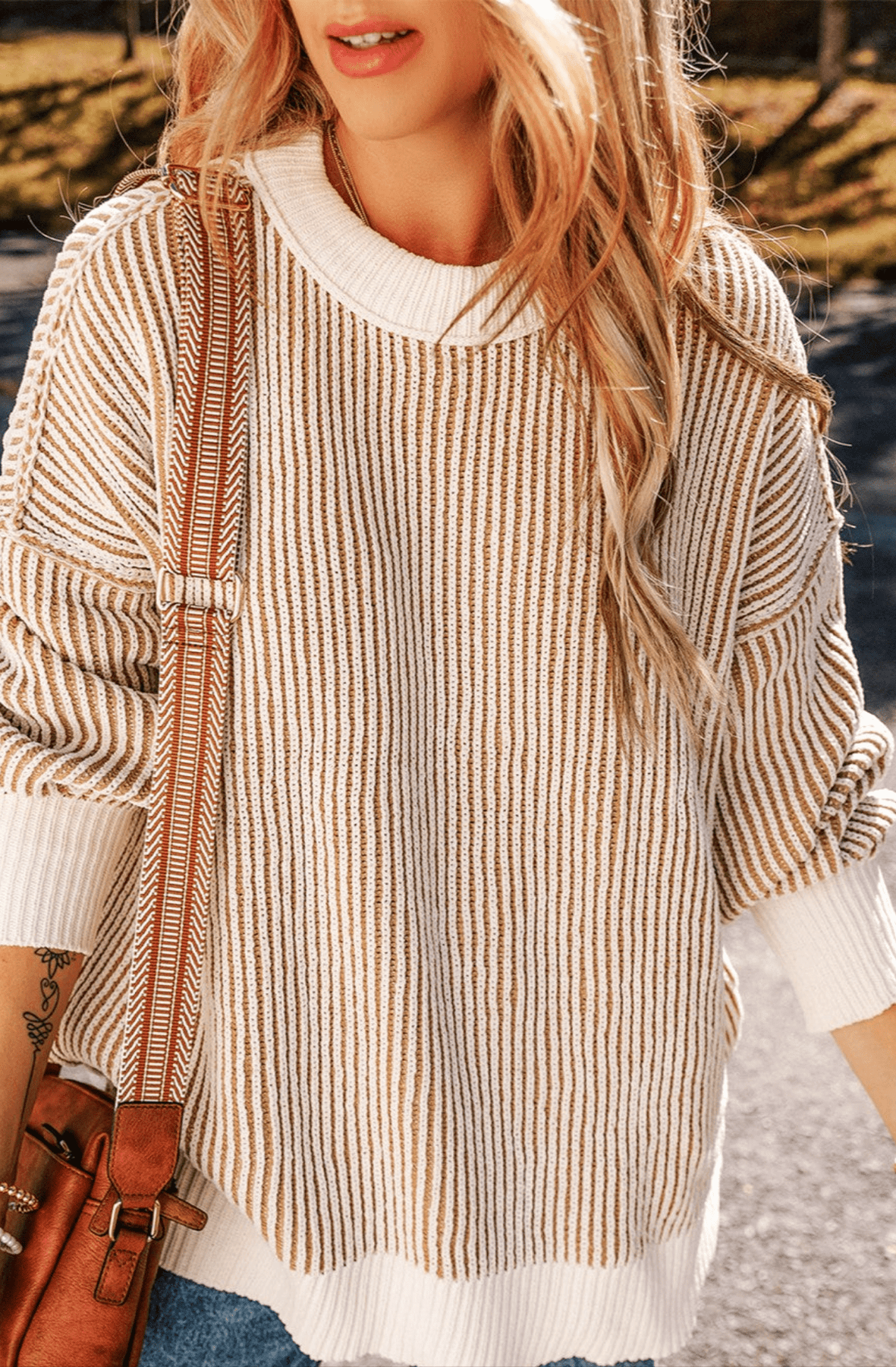 Round Neck Dropped Shoulder Sweater - Primrose Signature Boutique