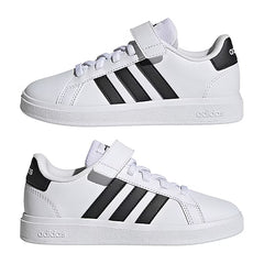 Introducing the Adidas Grand Court 2.0 EL K—the sneaker that combines style with substance. Designed for active kids, these shoes feature an eco-conscious upper crafted from recycled synthetic leather, delivering durability without compromise. The innovative elastic laces and adjustable hook-and-loop strap ensure a secure, customizable fit that grows with your child's movements. Built on a supportive rubber cupsole, they perform seamlessly across playgrounds, courts, and everyday adventures. With at least 50% recycled content throughout, you're choosing footwear that protects both your child's comfort and our planet's future.
