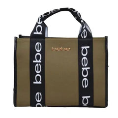 Primrose: Bebe Army Green Tote with Black and White Logo Straps