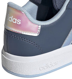 Step into style and comfort with these striking Adidas Performance shoes designed for active kids. Featuring a sleek matte dark blue upper crafted from durable imitation leather, these sneakers showcase iconic side stripes and an eye-catching holographic heel detail that catches the light. The secure lace closure ensures a snug fit, while the soft light blue textile lining keeps feet comfortable throughout the day. Removable insoles provide customizable cushioning and easy cleaning. Built with flexible, lightweight outsoles and a responsive tread pattern, these shoes deliver reliable grip and support for playground adventures and everyday wear.