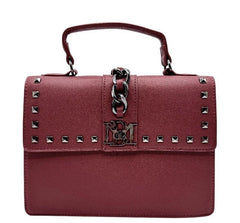 Badgley Mischka Top Handle Studs Wine Purse Bag Crossbody