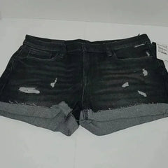 BLANK NYC presents the Distressed Roll Up "The Fulton" Black Jean Shorts, expertly crafted for a stylish, edgy look. These black denim shorts feature a distressed finish and a convenient roll-up design, combining fashion with comfort for a versatile wardrobe staple.