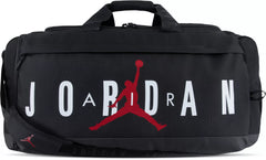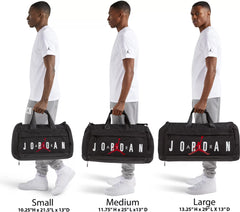 The Jordan Velocity Duffel Bag in black features a spacious main zippered compartment and an inner zippered drop pocket to securely store smaller essentials. A dedicated side shoe garage helps keep your gear organized and clean. Adorned with the iconic Jumpman logo, this bag offers adjustable straps ranging from 31.74" to 51" for comfortable carrying. Crafted from 100% polyester, it measures 12.25" H x 29" L x 12.5" D with a 69L capacity. Easy to maintain with spot cleaning, it combines functionality and style for athletes on the move.